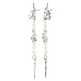 Aretes largos, colgante de perlas y formas orgánicas, baño de plata esterlina — CONSTANCE