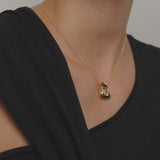 Collar cadena fina, colgante en forma de hagstone, baño de oro 18k — FREE