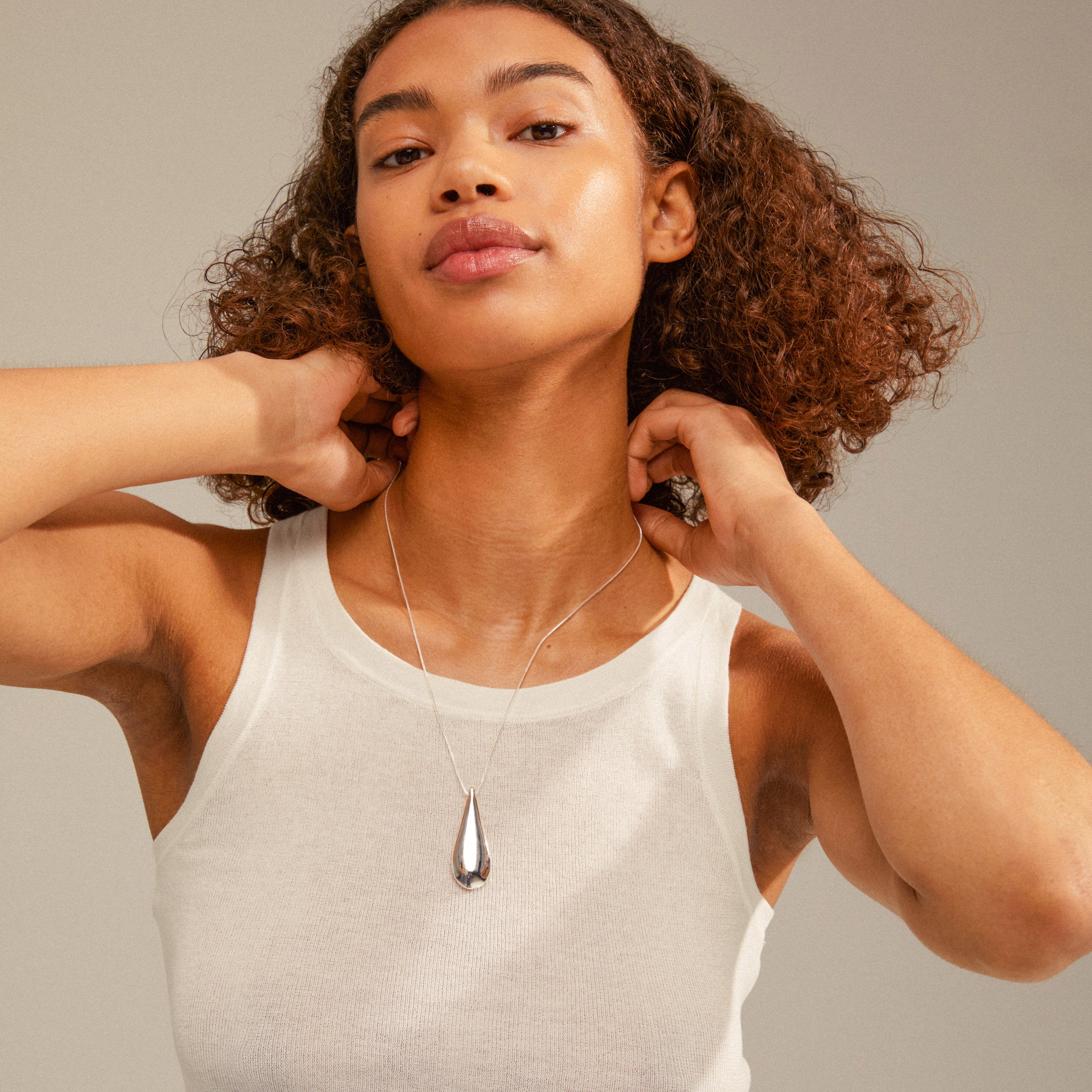Collar cadena fina, colgante en forma de lagrima, baño de plata esterlina — ALMA