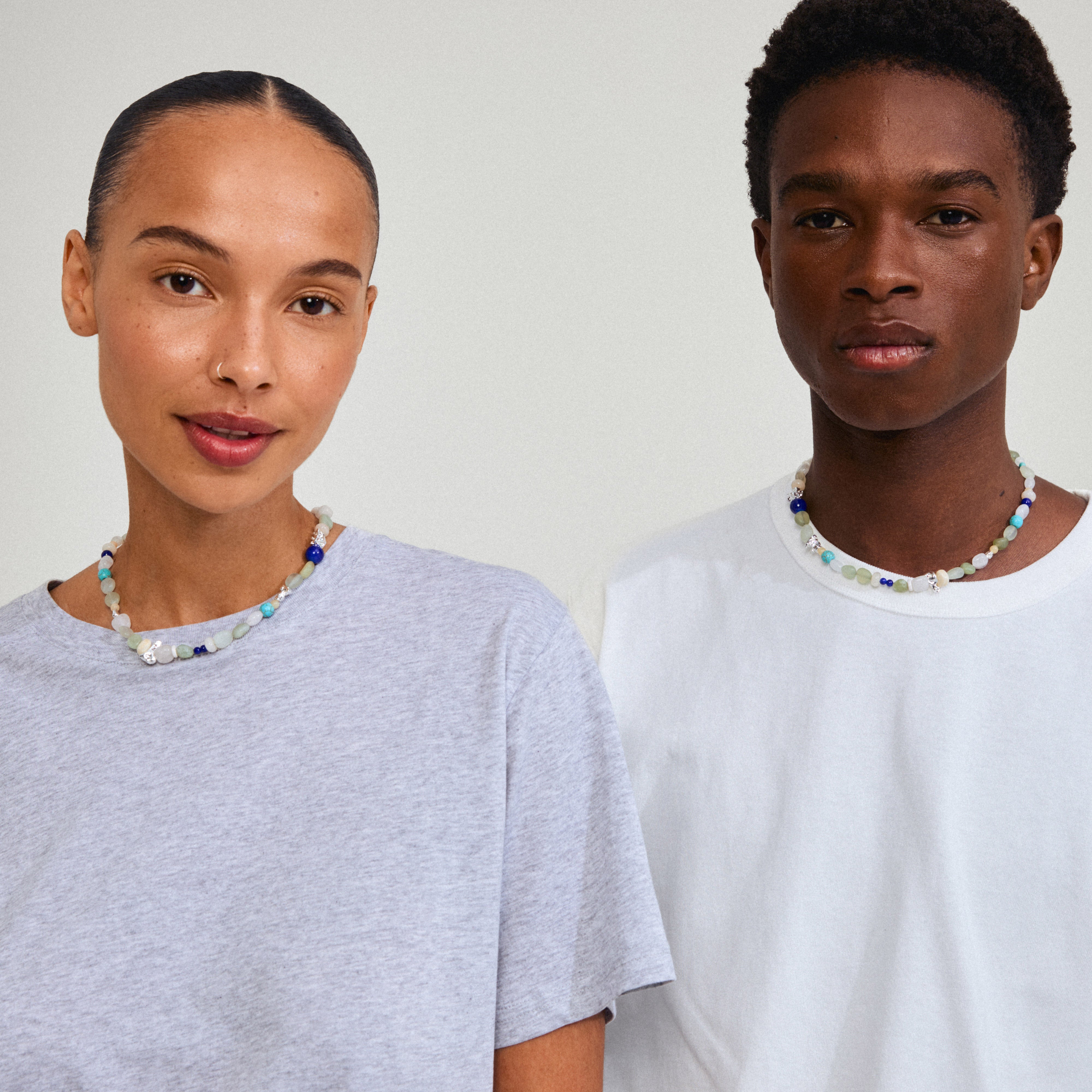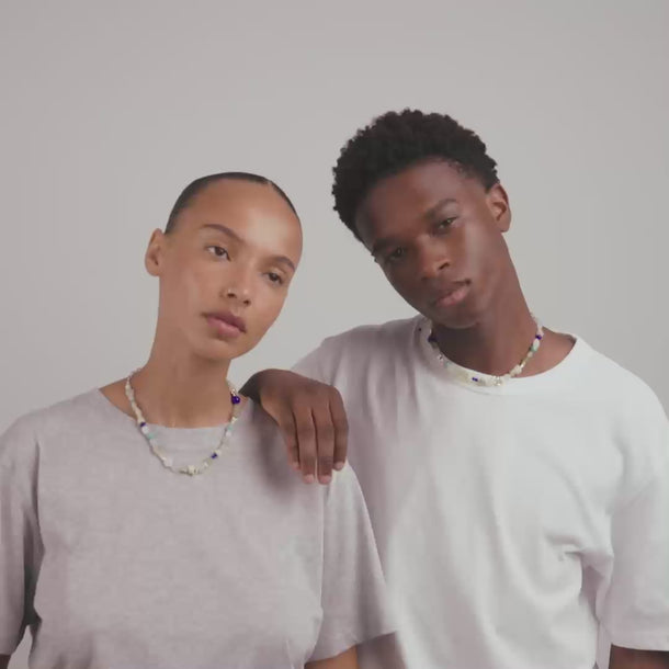 Collar cadena fina, con mezcla de piedras y cuentas, baño de plata esterlina — DREAM