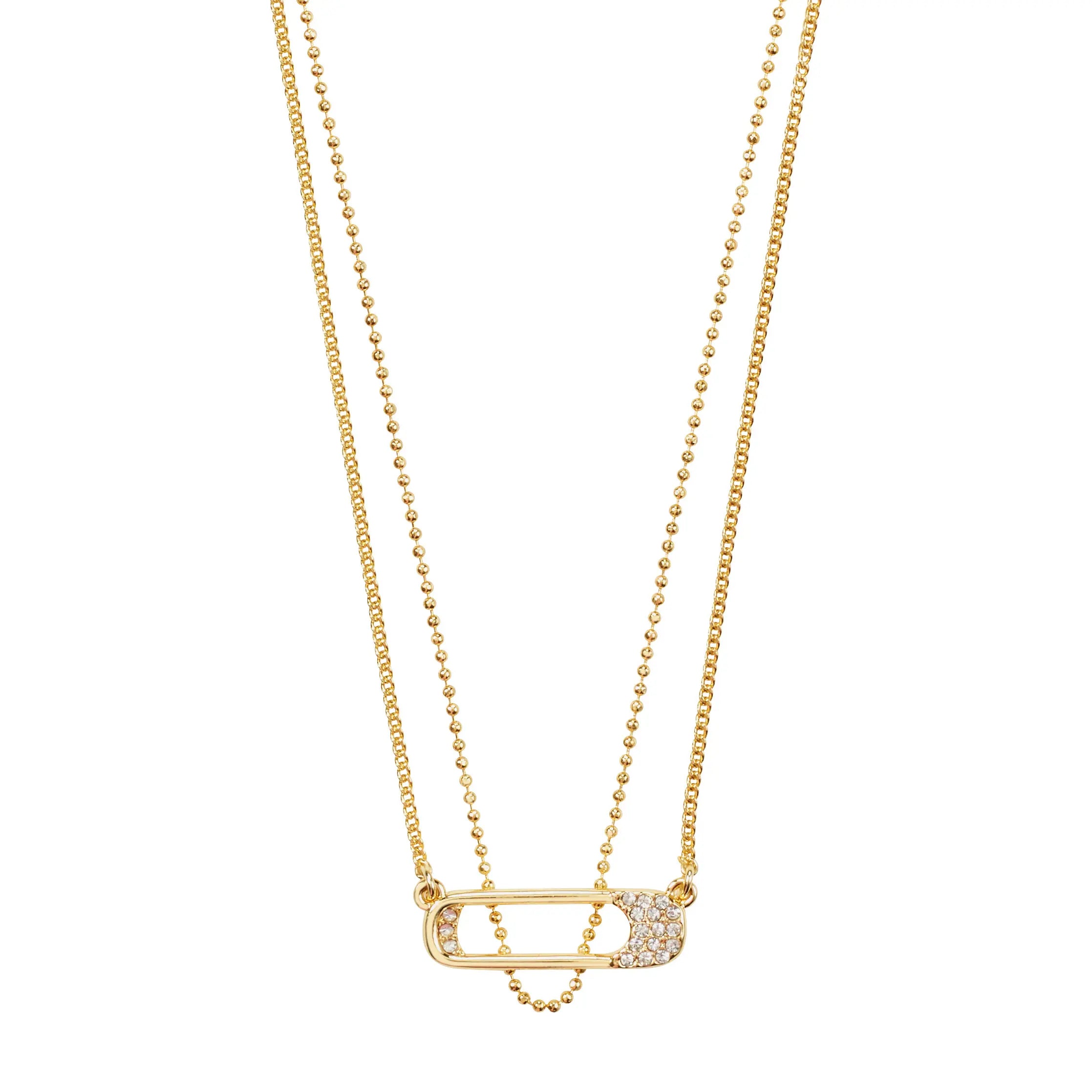 Collar cadena fina set 2-in-1, colgante forma de alfiler, baño de oro 18k — INSTANT