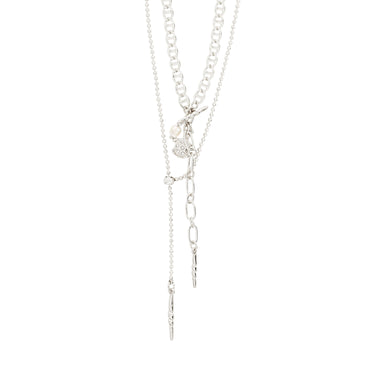 Collar cadena larga 2 en 1, con colgante de tortuga y perla, baño de plata esterlina — BREEZE