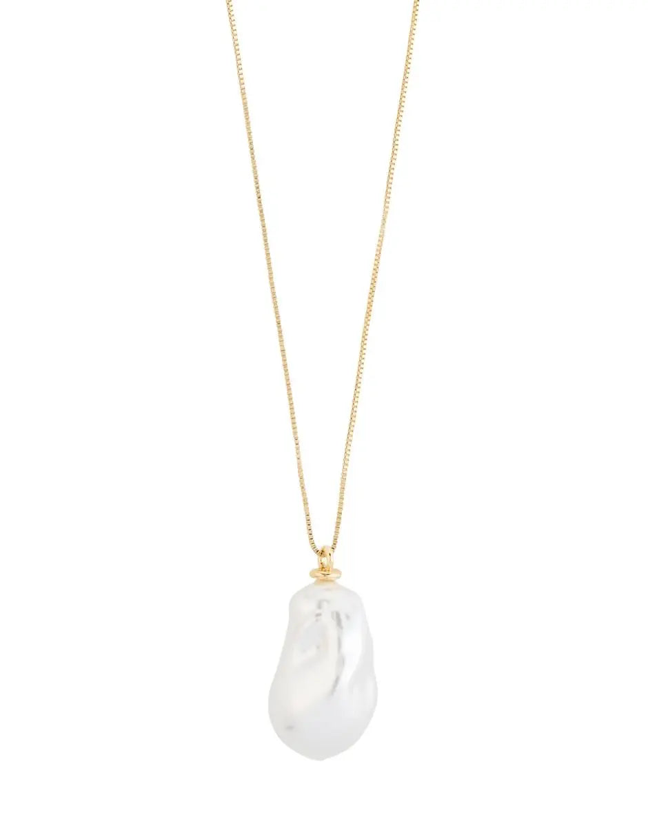 Collar largo, cadena fina, perla grande colgante, baño de oro 18k — SKY