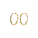 Aretes de aro diseño torcido con brillantes, baño de oro 18k — EZO