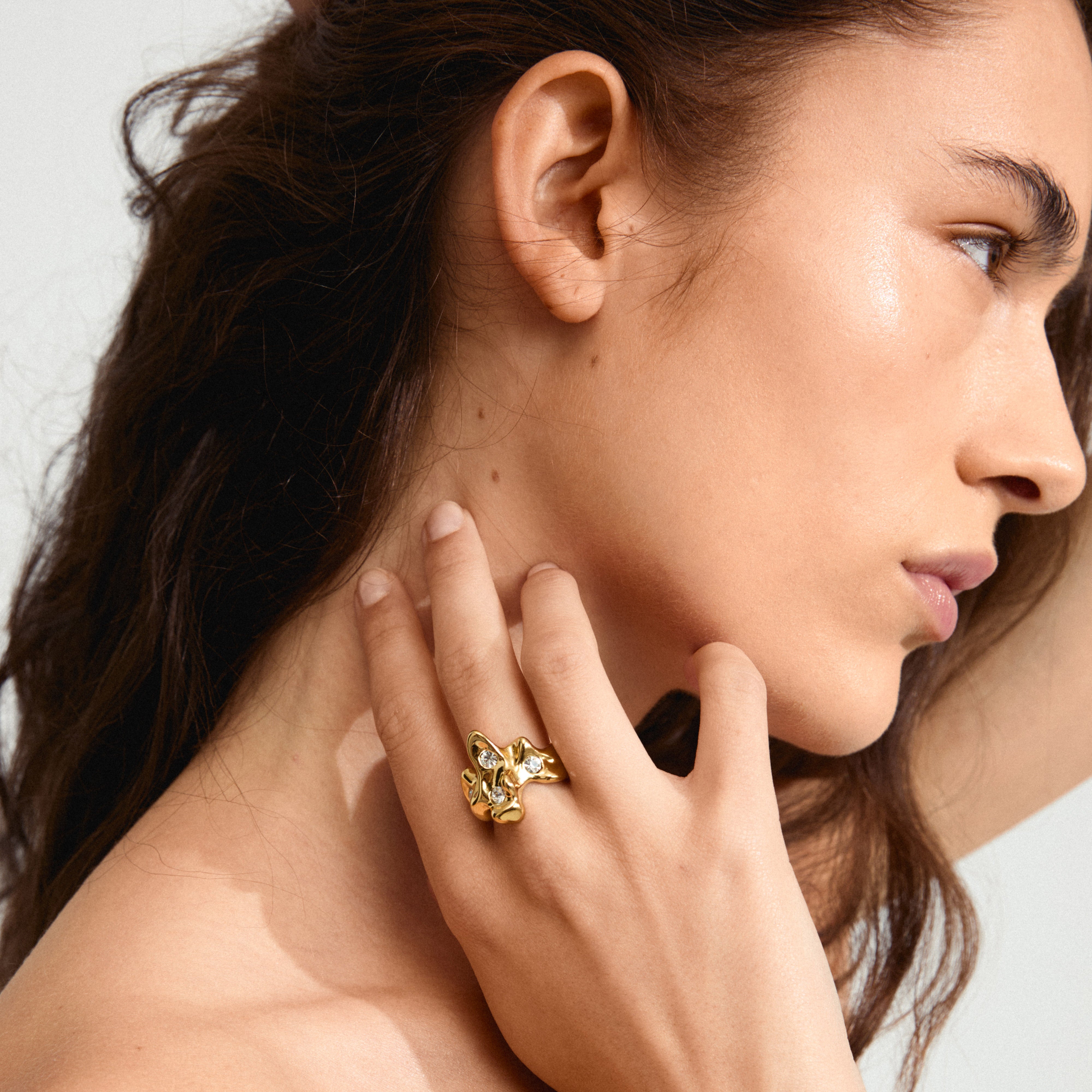 Anillo statement, forma orgánica con cristales, baño de oro 18k — SUNSET