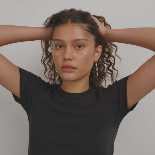 Aretes colgantes, diseño boho asimétrico, baño de oro 18k — BETWEEN