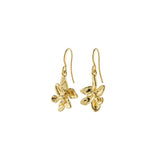 Aretes colgante sólido de flor abstracta, baño de oro 18k — RIKO
