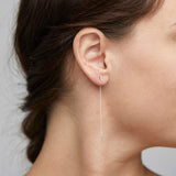 Aretes largos 3 brillantes de botón y cadena fina, baño de plata esterlina — TITIANA